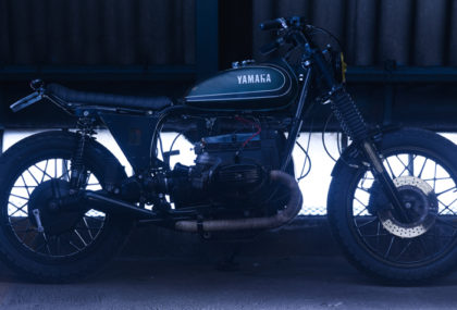 - all engine covers + frame + fork legs + wheels + bespoke mudguards + handlebar + levers + fenders shiny black powder coated;
