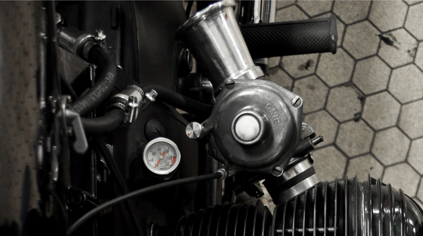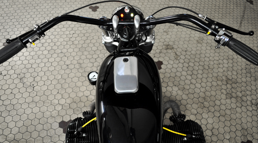 Here comes a vintage BMW “R75/6” from 1975. The owner is one of the most “chic” gentleman we have ever met. It was therefore natural that for this very unique time, we decided to go for a paint job on a vintage “Honda” tank.