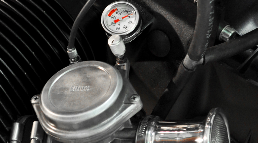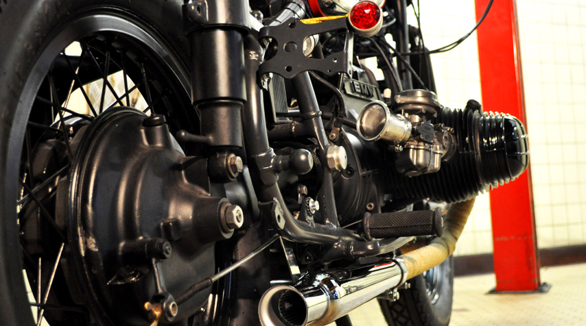 We agreed on installing a 800cc boxer engine into this frame. But we changed the whole ignition system by a TCI/CDI one. Just for the fun of it…