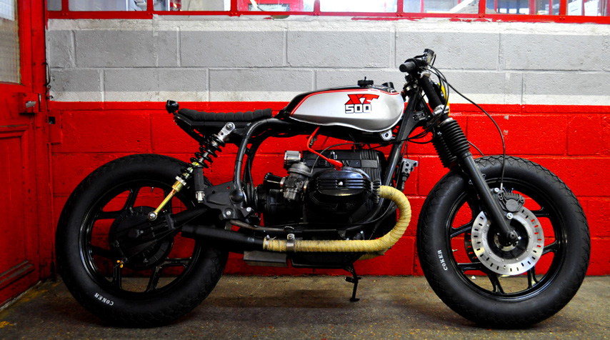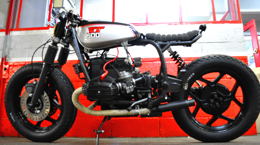 The donor bike here is a BMW R100 RT01 from 1984. We were commissioned by the French Insurance Company La Parisienne. We wanted to go for something brutal, radical and never seen before with a BMW basis.