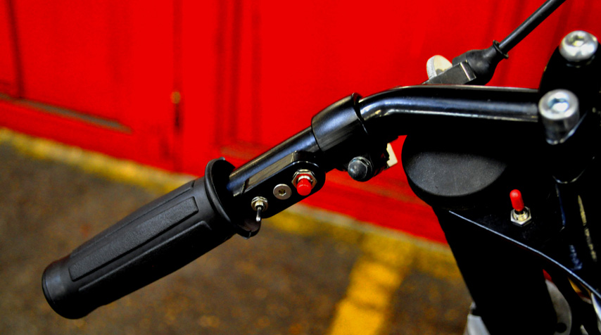 - stainless stell Blitz Motorcycles mini switches to control horn + blinkers.