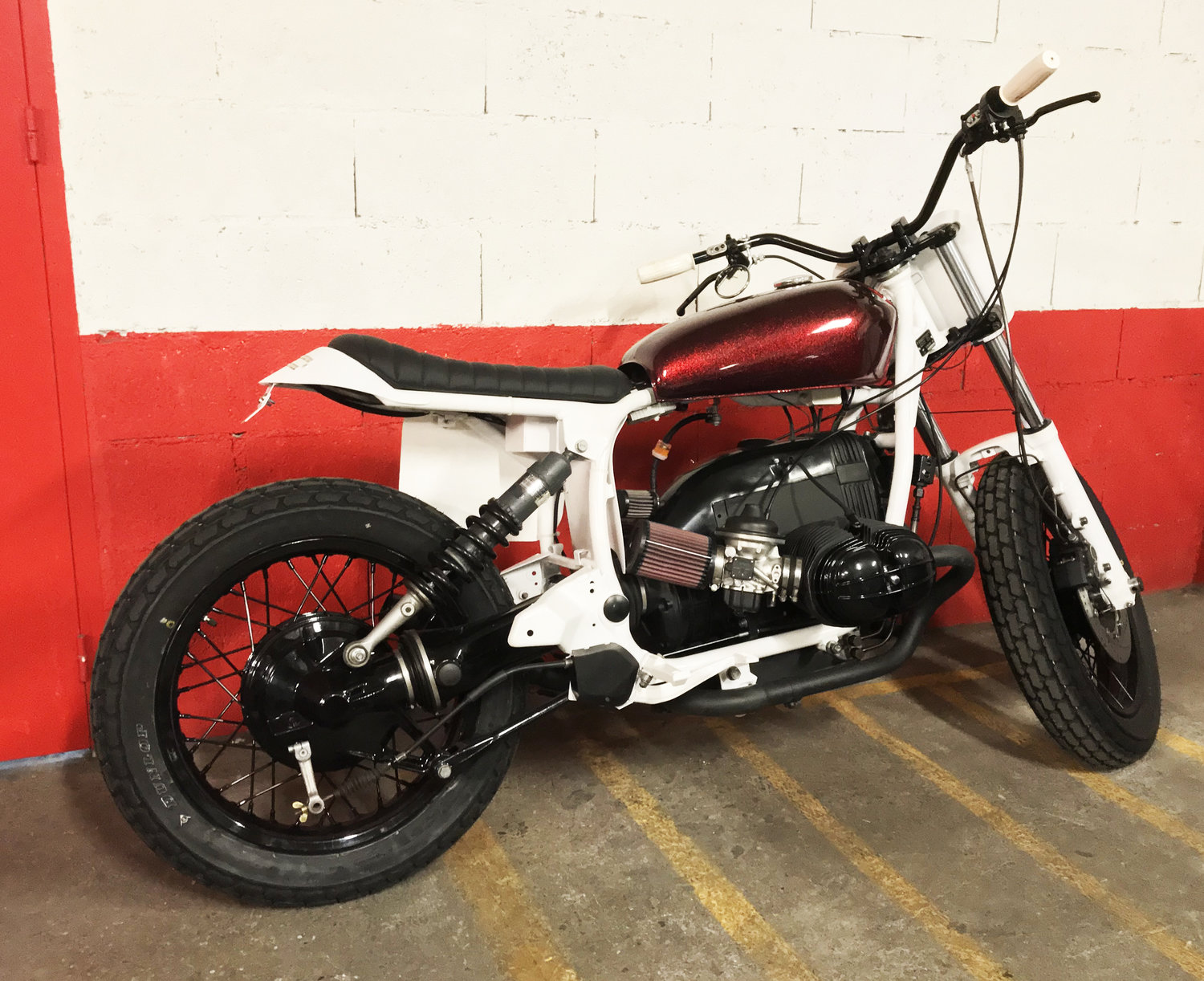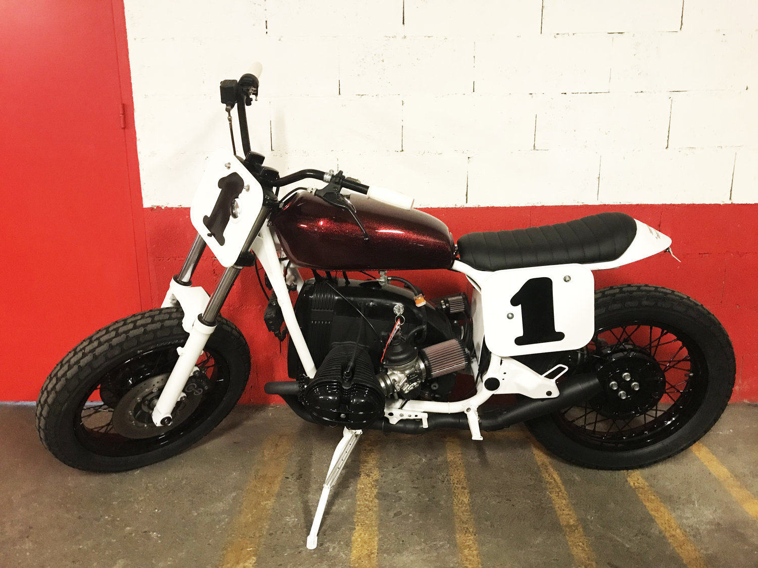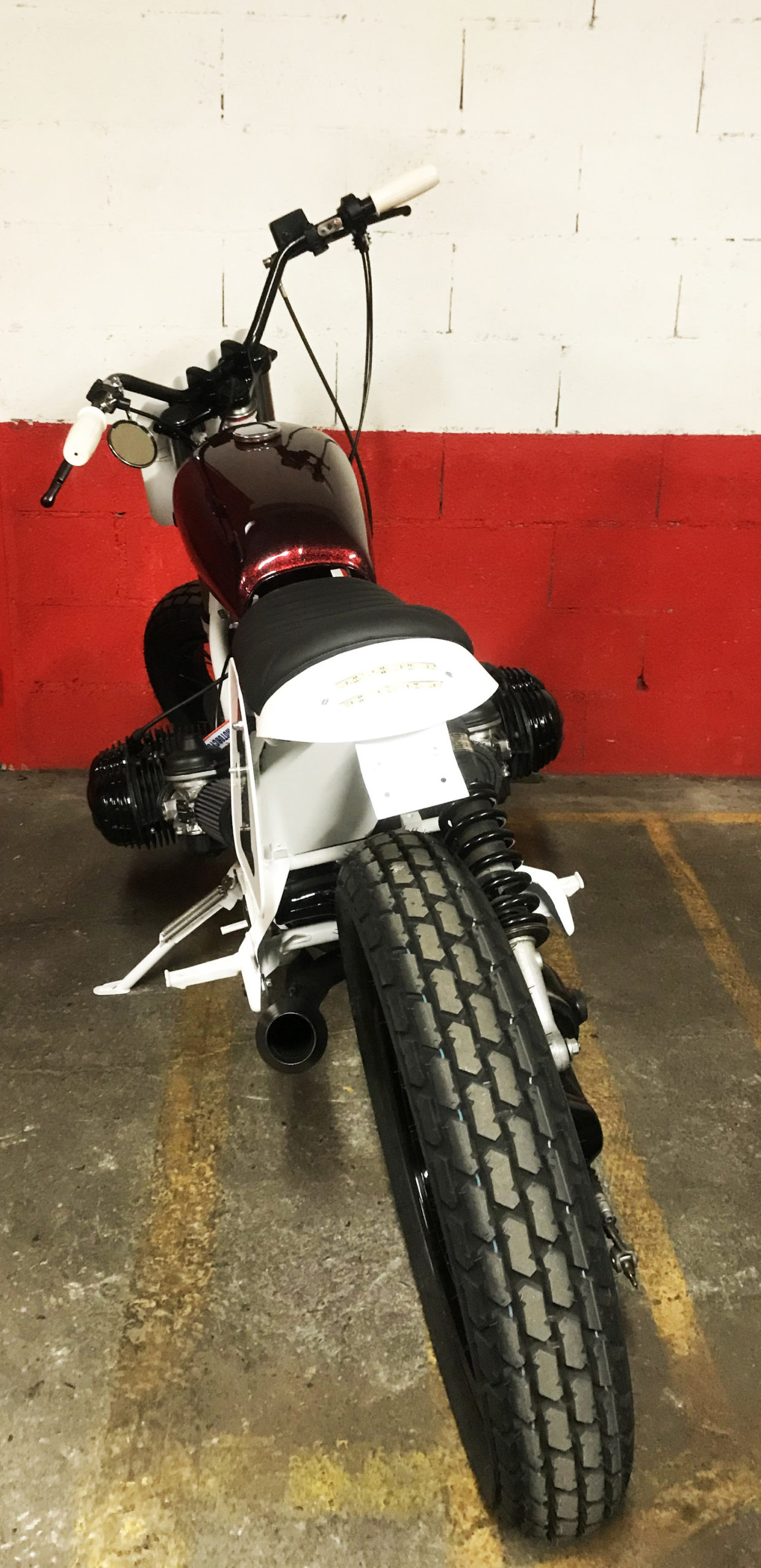 We fully transformed this ‘92 BMW R100R for an Italian customer who seemed not to be afraid to retrieve a motorcycle inspired by the craziness of the seventies. Hence the candy red applied on the tank.
