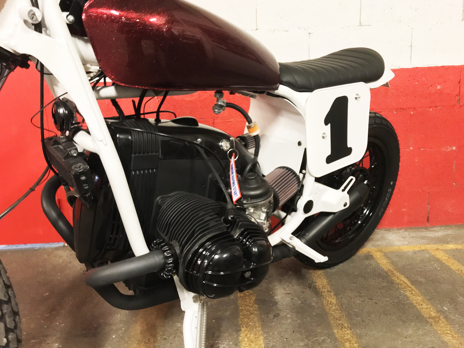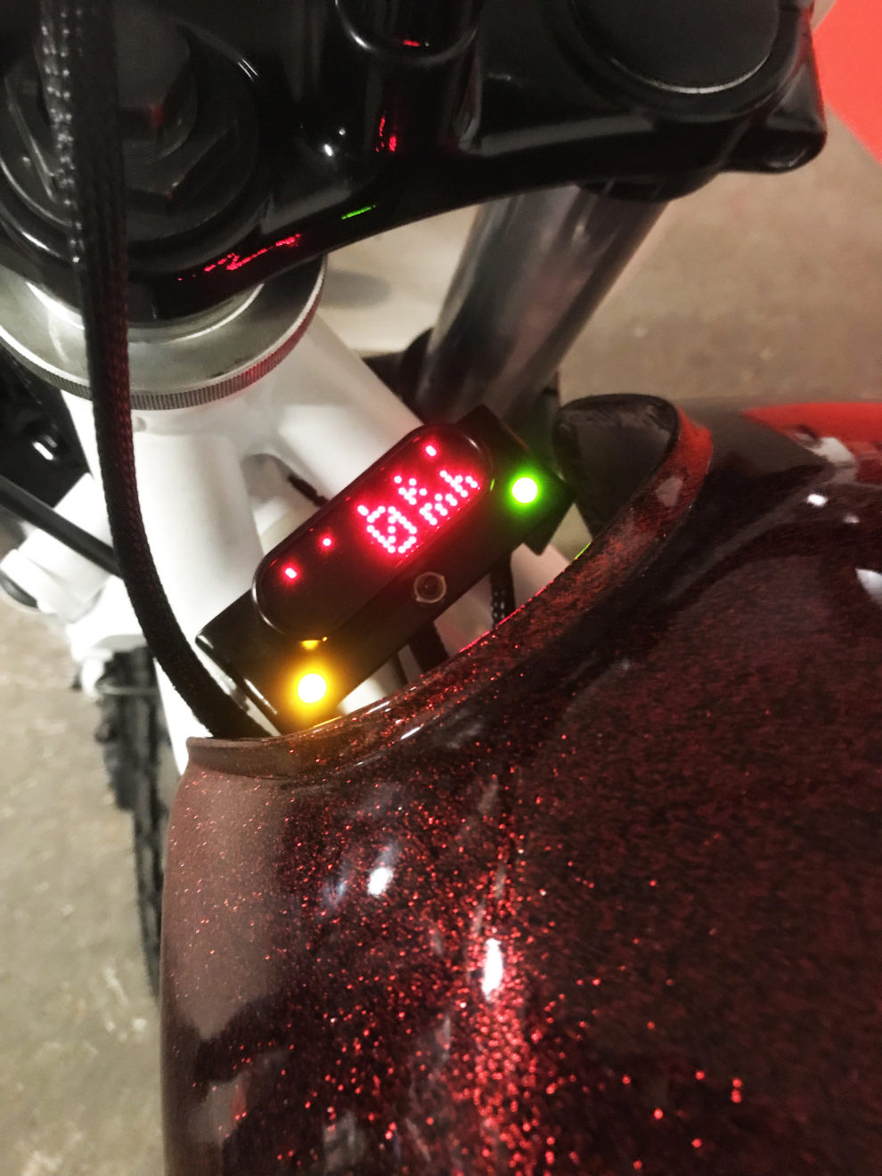 A Motogadget electronic speedometer has been installed on the hand made dashboard (which welcomes also the neutral and oil pressure lights)