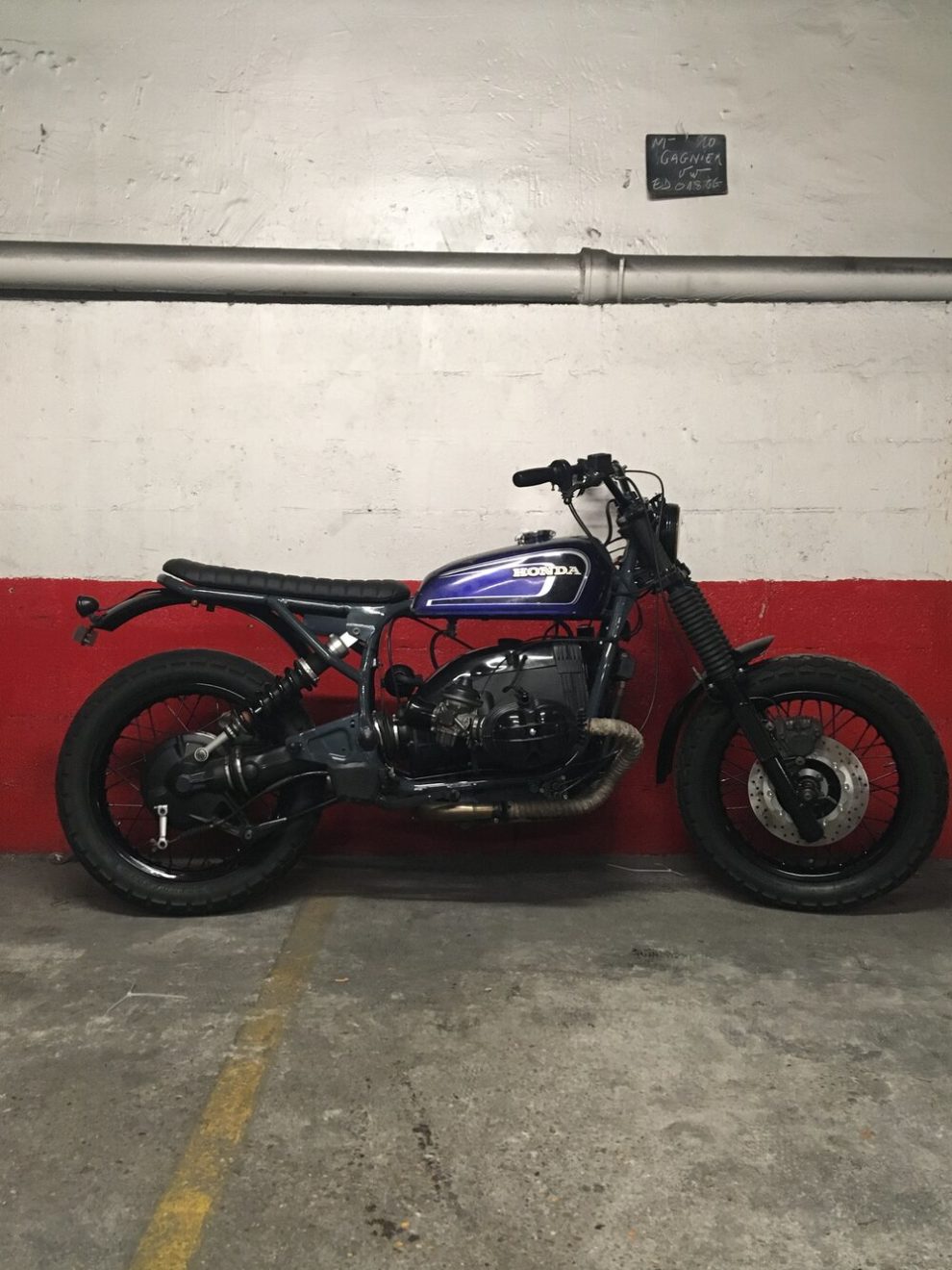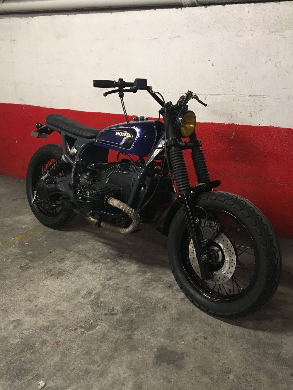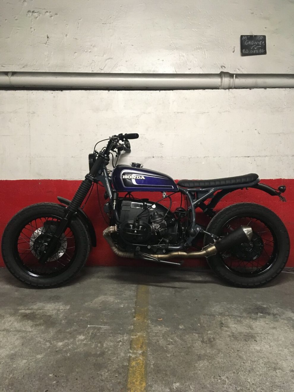 Based on a ‘84 BMW R100 GS, here is this new production of ours.