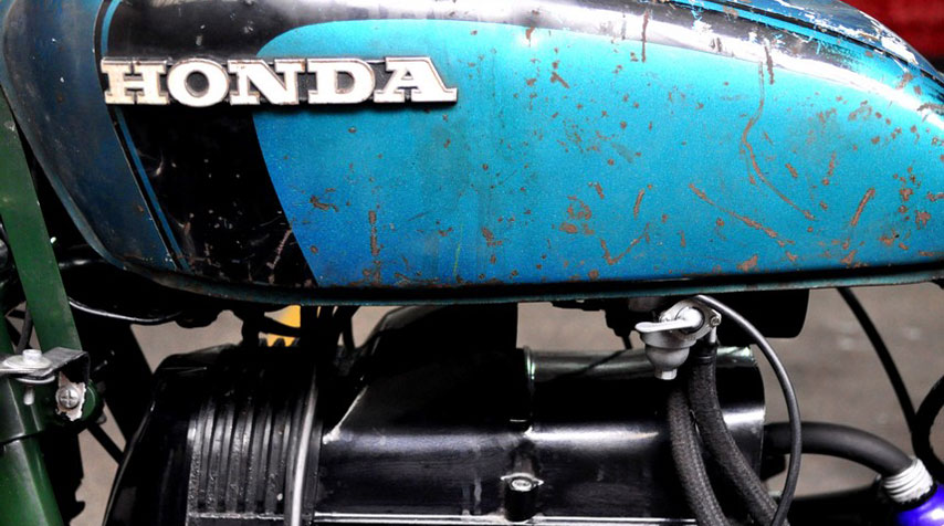 Duck blue 1970s Honda tank installed in original condition.