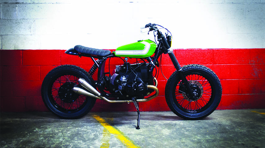 This ’84 BMW R80GS was sent to us from Tahiti. It arrived in a quite rotted condition and we assume its owner was often riding off road on this one.