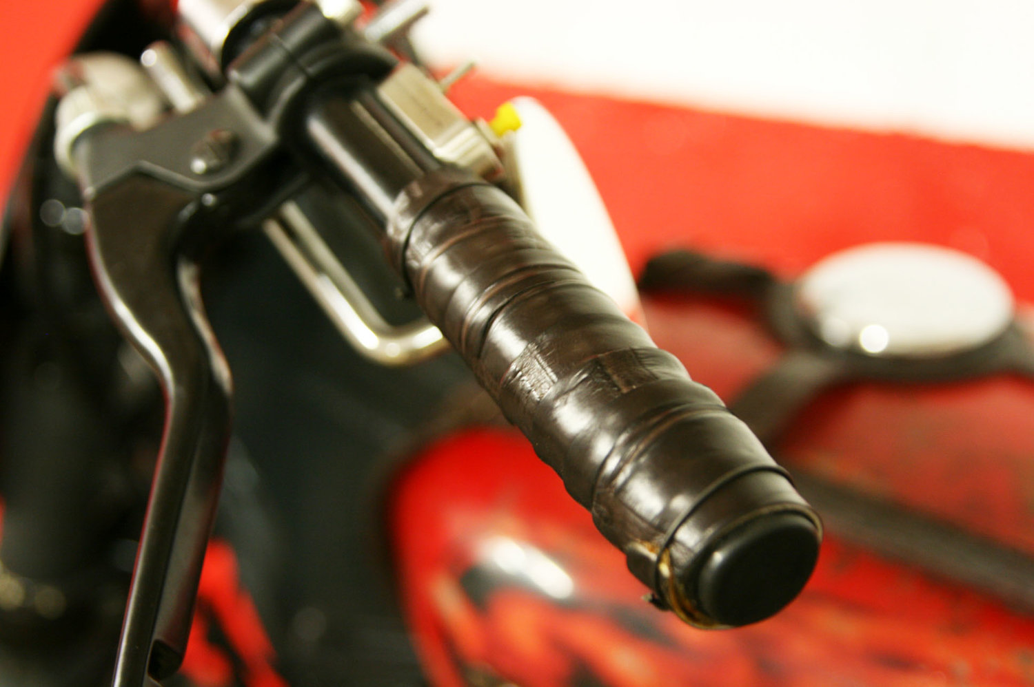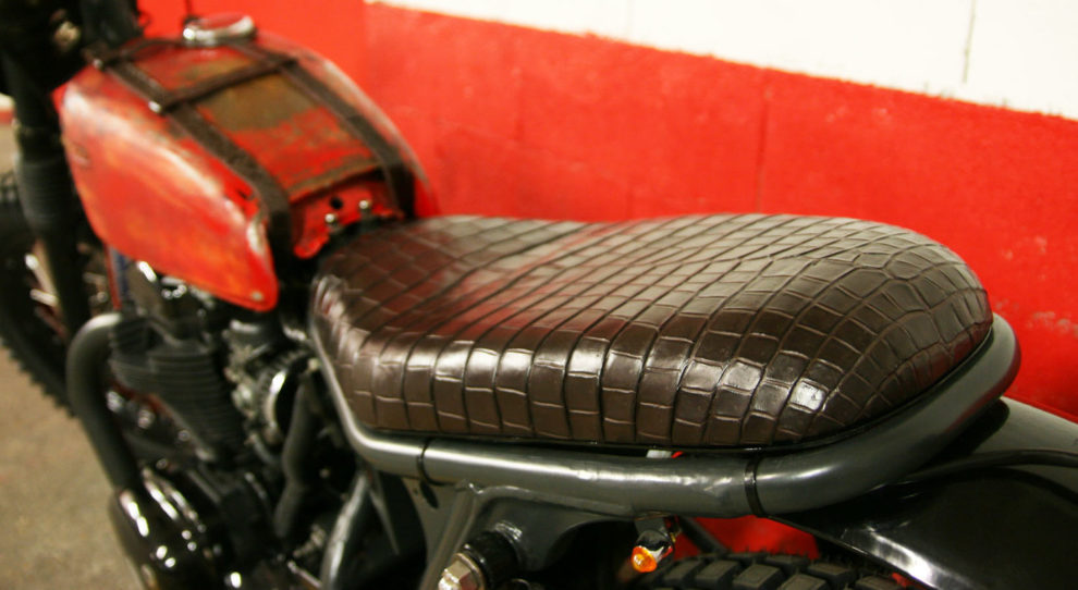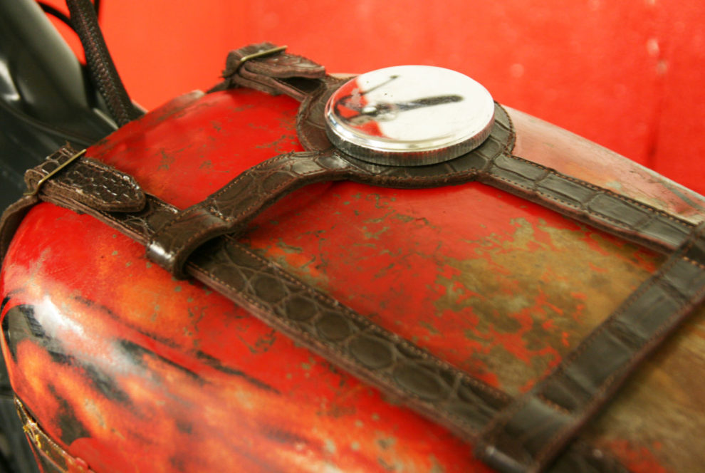 - bespoke leather crocodile skin straps provided by RM Williams to be used as the handlebar grips.