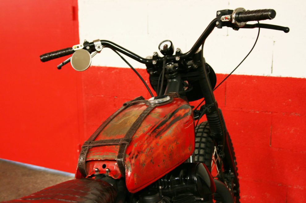 RM William’s craftsmanship was inserted into this project by asking them to take care of the seat, the handlebar’s grips and the bespoke harness mounted around the tank.