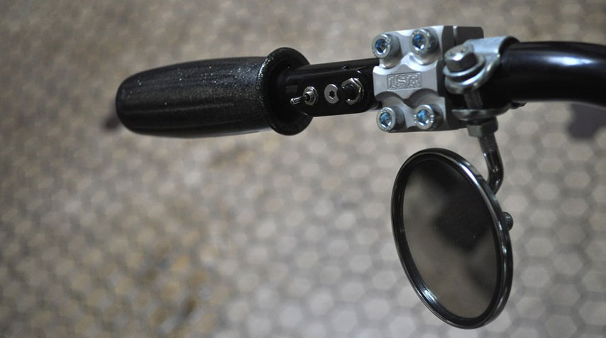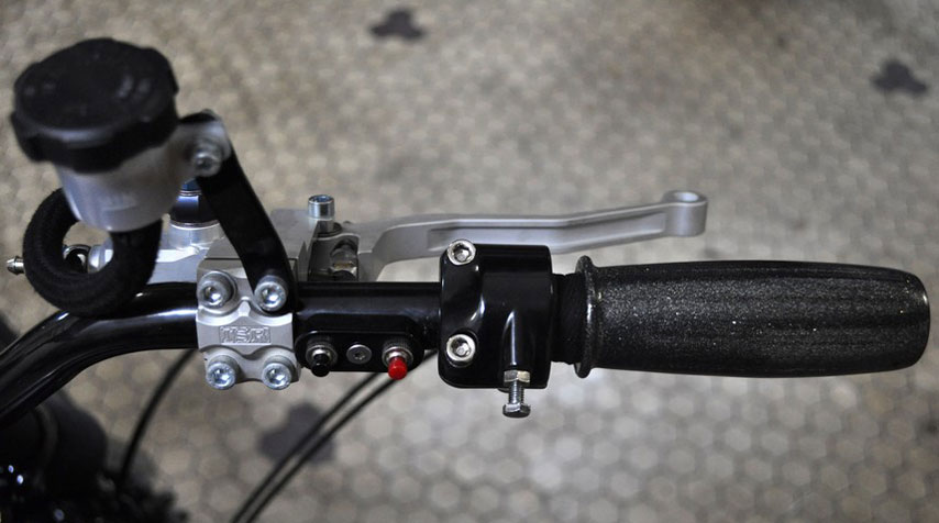 - Shiny black powder coated front fender (handmade), forks and wheels.