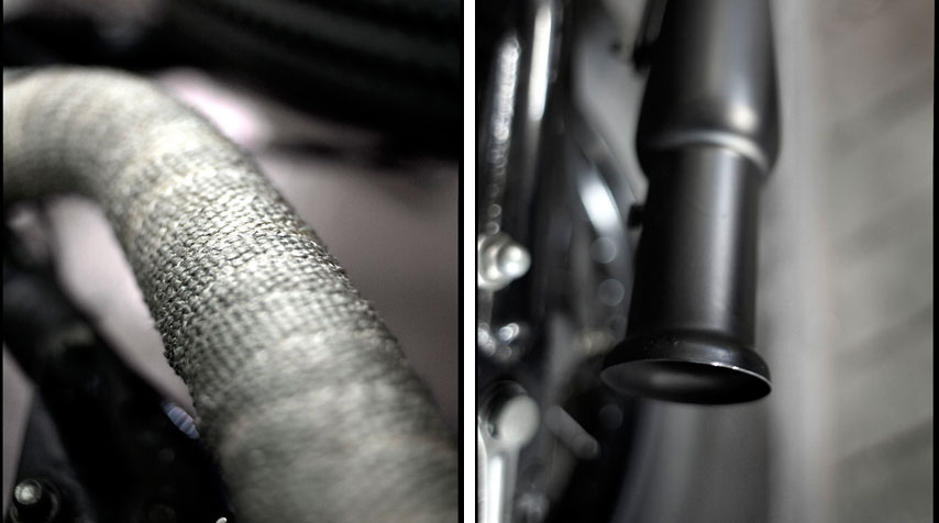 - Thermic tape wrapped exhaust pipe;