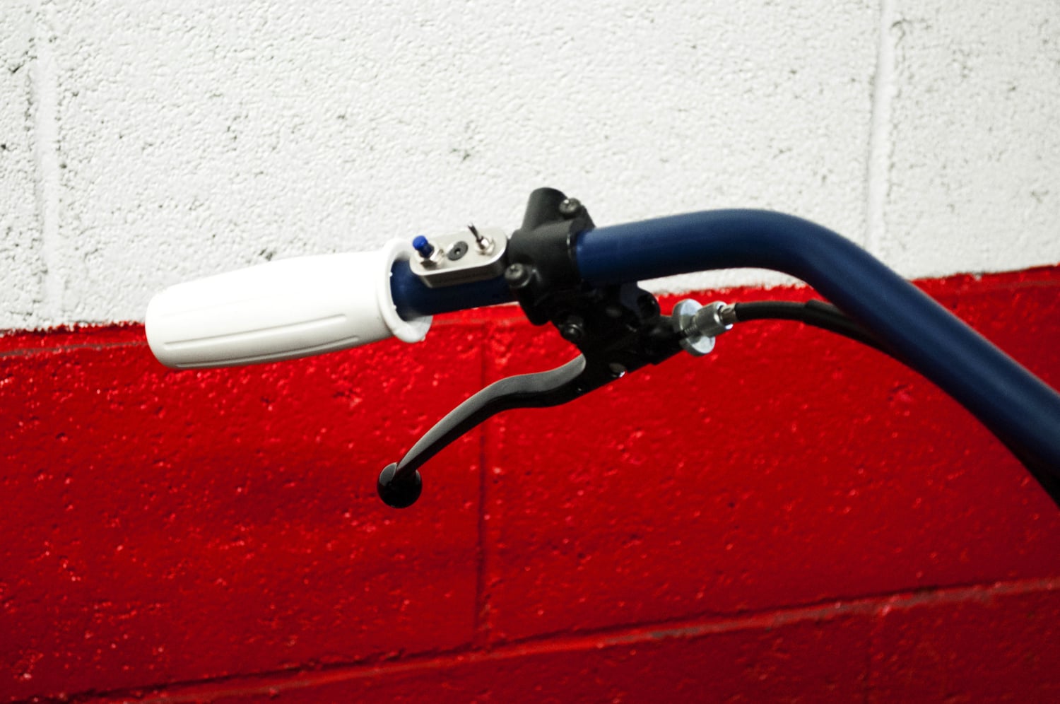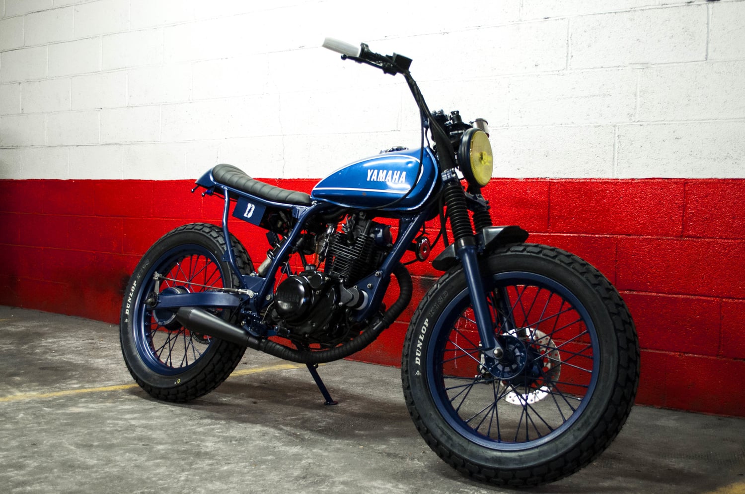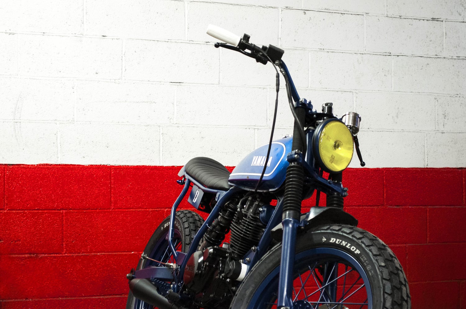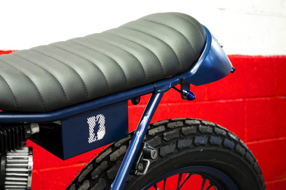 - mat navy blue powder coating of the whole machine (frame, wheels, swingarm, fork legs, handlebar, headlight, foot rests, side stand, etc…).
