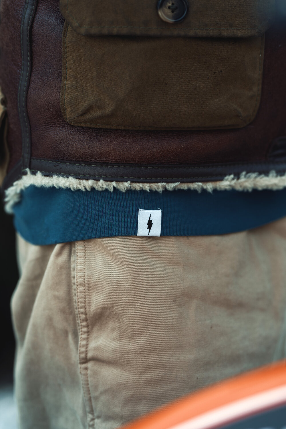 Comes in size S, M, L & XL. The inside labal is knitted, stitched in the collar and introduces our mascot.