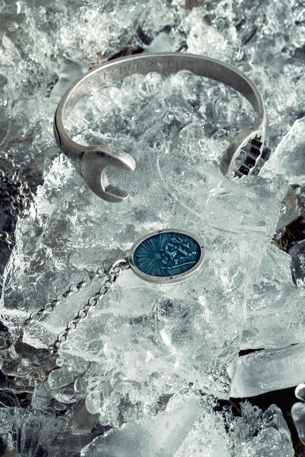 Please note: Siver bracelet and small sliver Motorcycle spark plug are sold separately.