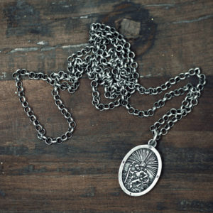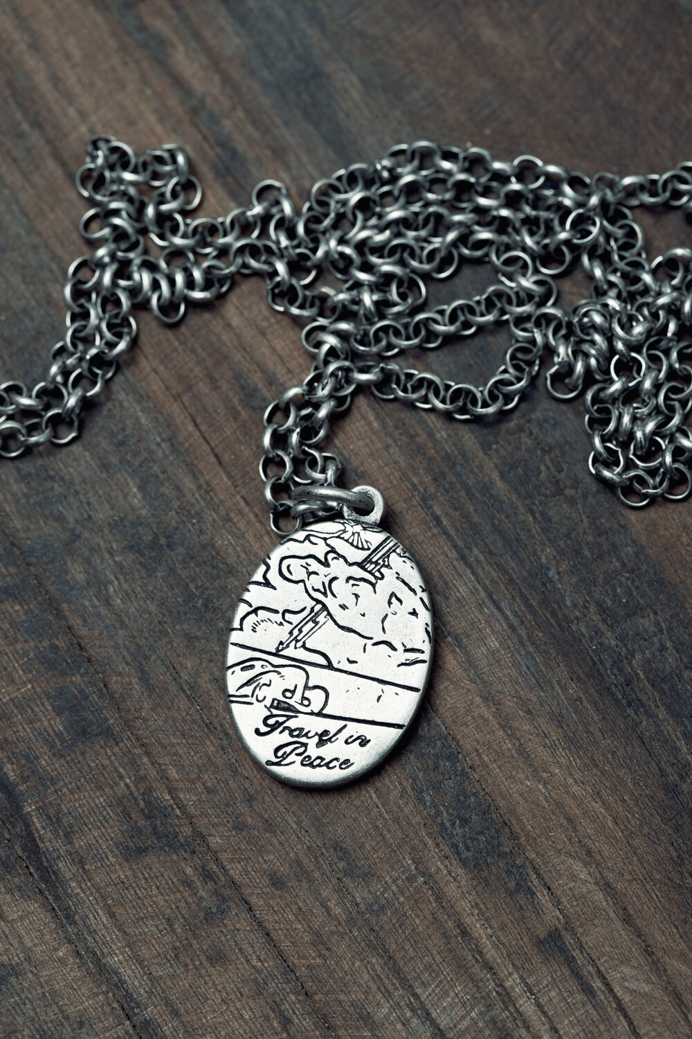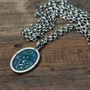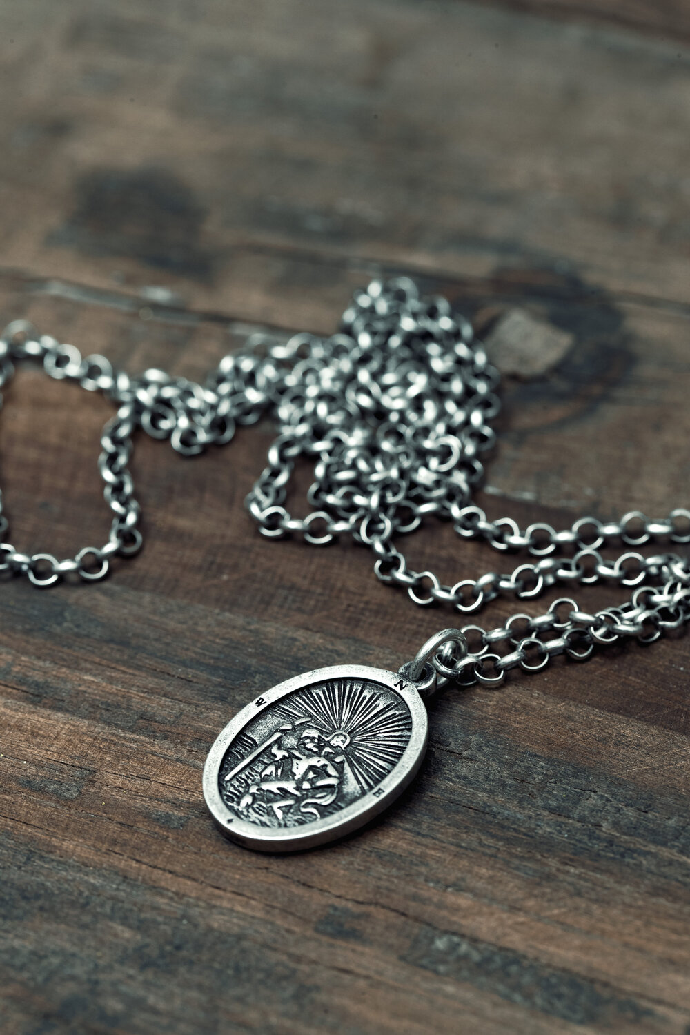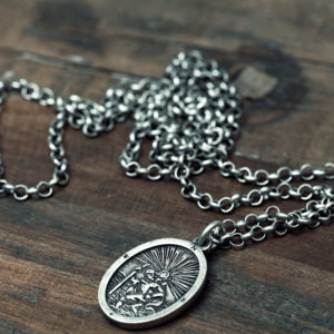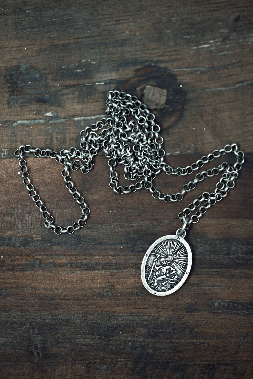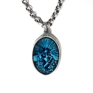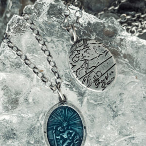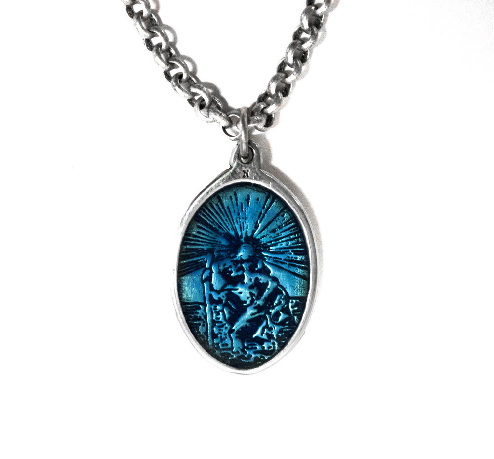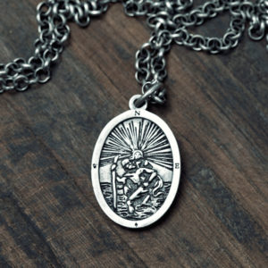 St Christopher is historically the saint Patron dedicated to protect the travelers. Back in the days, people even had such a medal “stitched” on the dashboard of their vehicle, when traveling was still considered as an adventure.