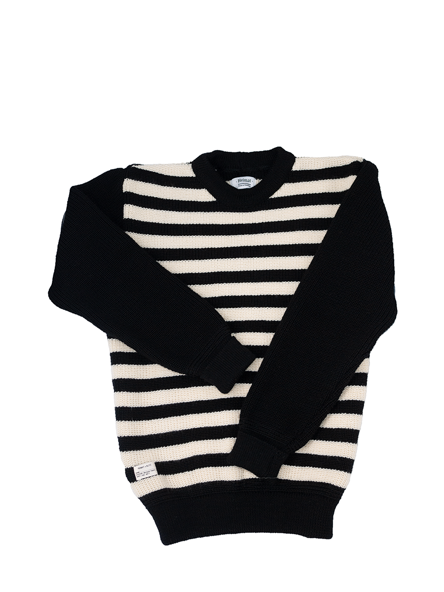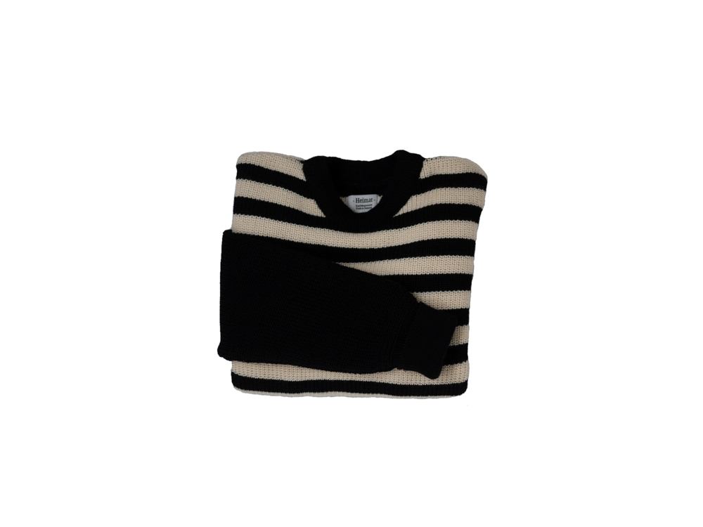 We are very proud to release this striped sweater built on our behalf by Heimat with the same knitting techniques and knitting machines as the ones used 60 years ago.