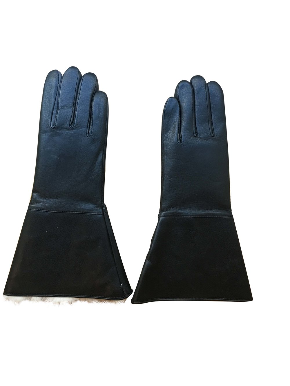 – made of deer leather (outside) and white rabbit fur (inside lining);