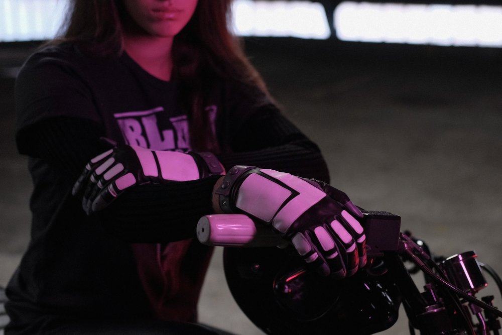 – “blitz motorcycles” embossed in the right index finger’s fork;